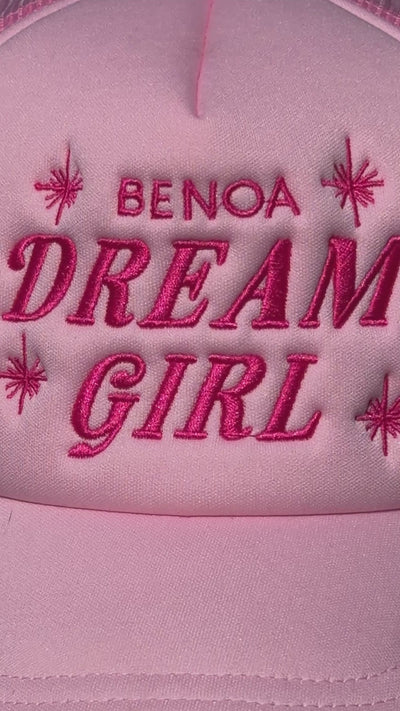 "Dream Girl" Embroidered Trucker Hat -Pink w/ pink